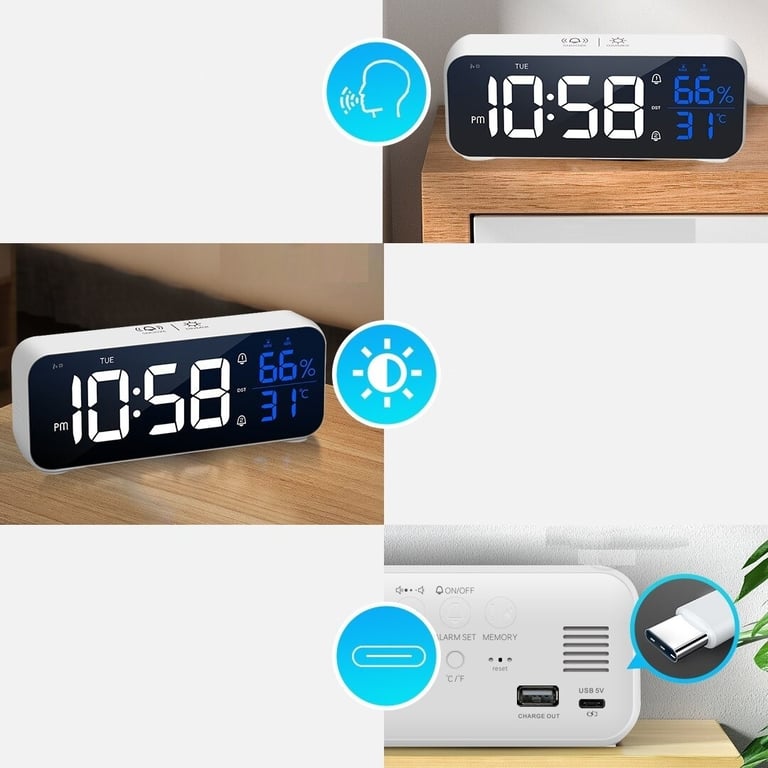 Package Contents: 1x clock, 1x USB charging cable