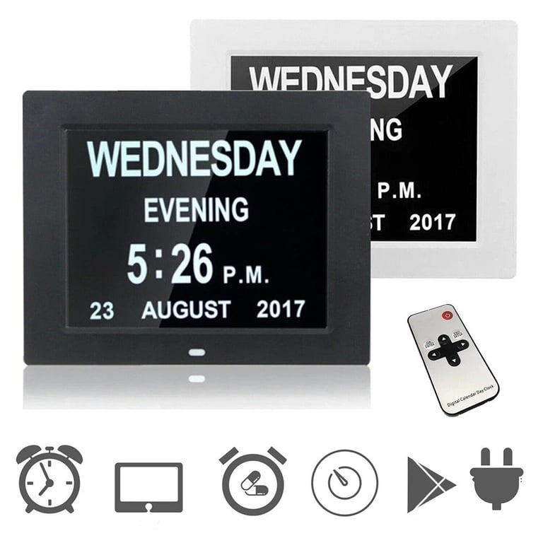 Functions: date, alarm, night light, USB port, SD card reader, medication reminder
