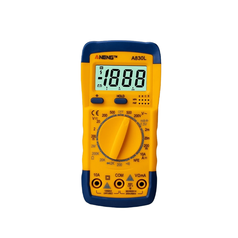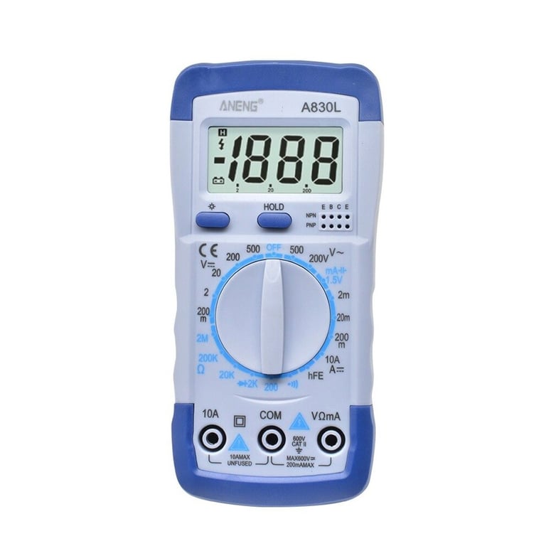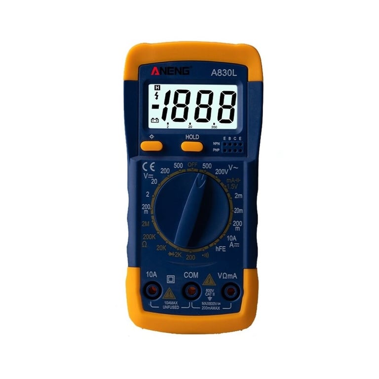Our digital multimeter is a versatile and reliable tool for measuring a wide range of applications. It has a maximum DC voltage of 600 V with an accuracy of ± 0.5% and functions for measuring resistance, temperature, and current. The backlit display makes it easy to read measured values even in poor lighting conditions. The LED flashlight is a practical addition for measurements in dark places.