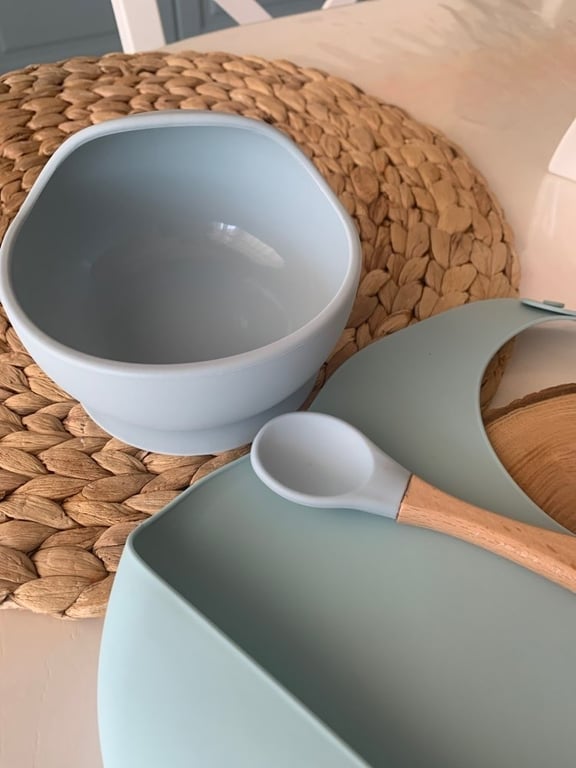 The silicone bowl with a non-slip suction base is suitable for babies and younger children. The set is made from high-quality silicone that is BPA-free. It also includes a silicone spoon.
