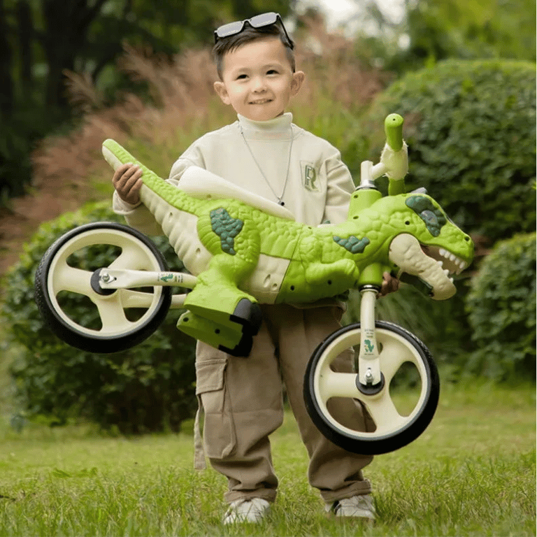 A children's balance bike in the shape of a dinosaur is a great choice for little explorers aged 2 to 6 years.