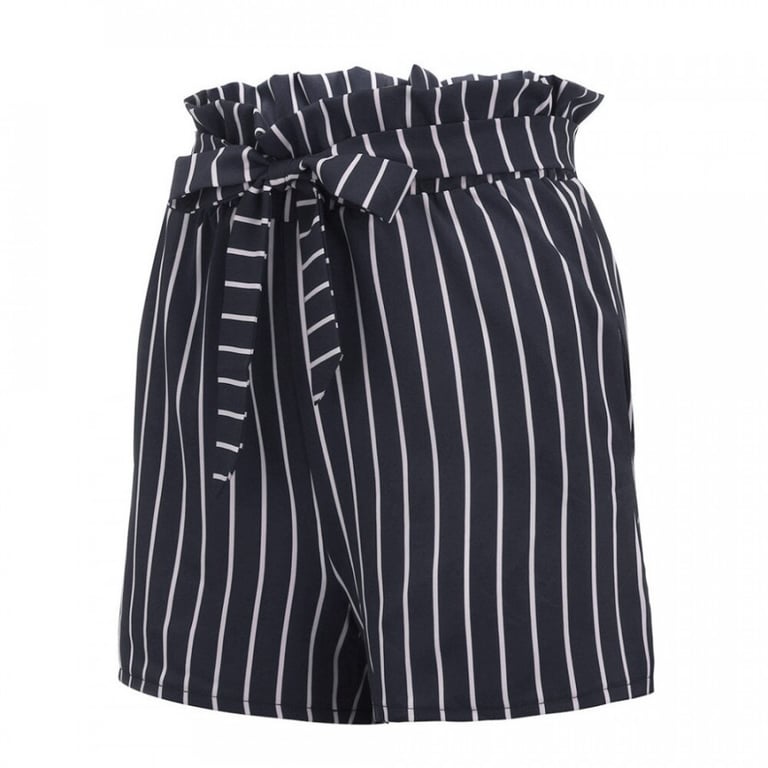 Women's high-waisted shorts with a tie belt. Loose fit. Striped pattern print. Available in multiple colour options.