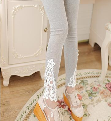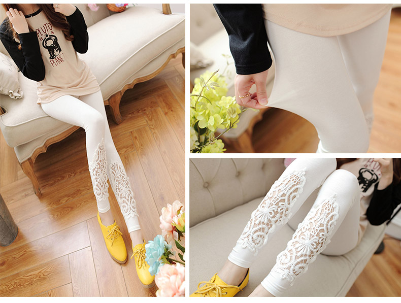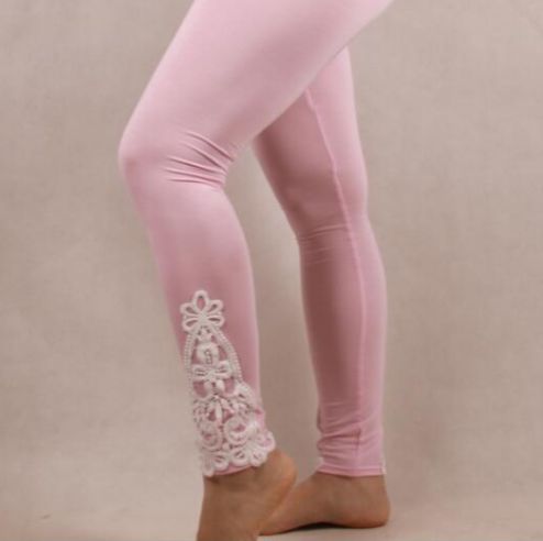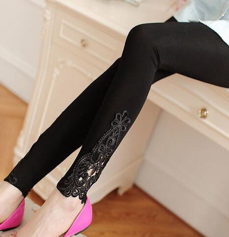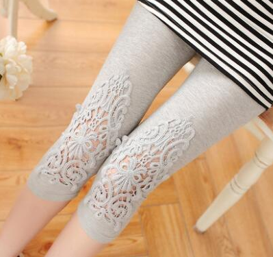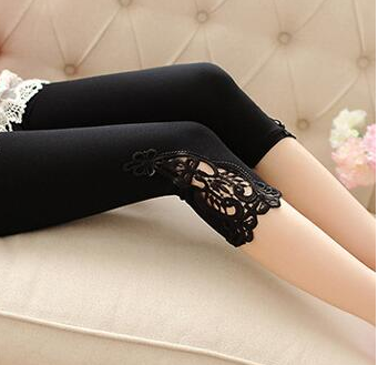 Elegant women's leggings with lace legs. The leggings are available in two different lengths and several colours.