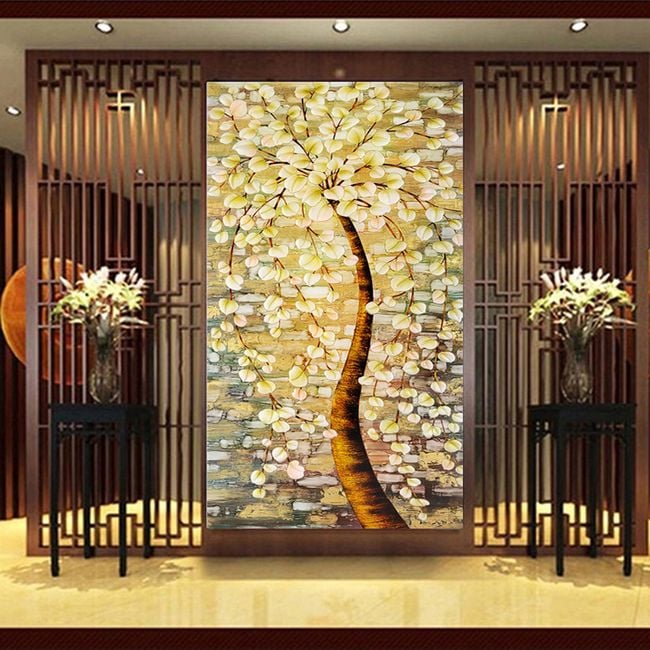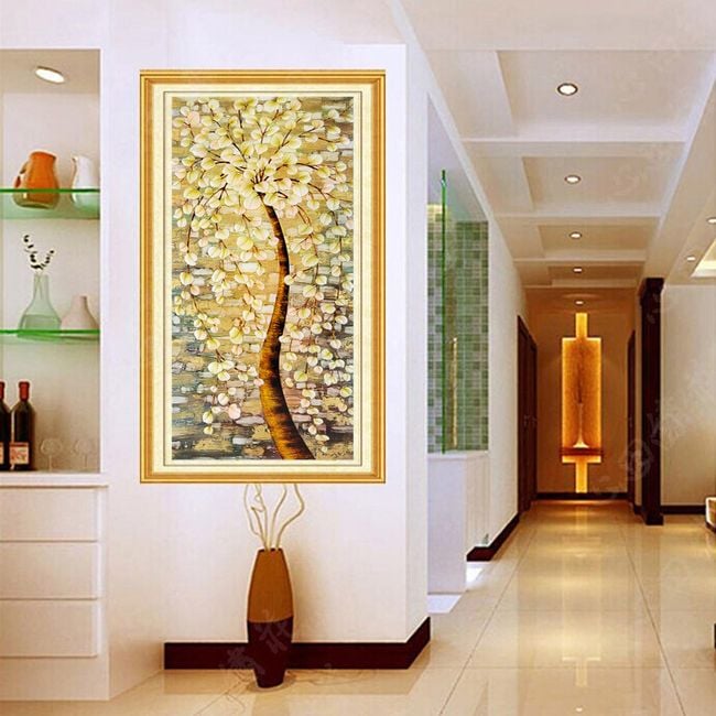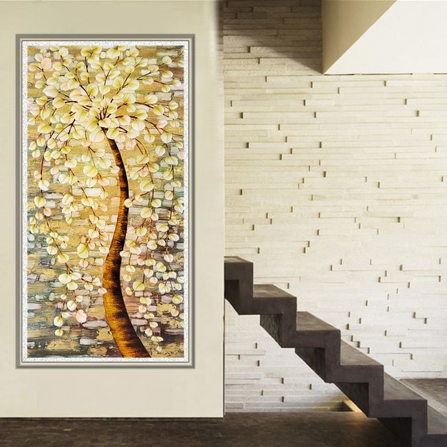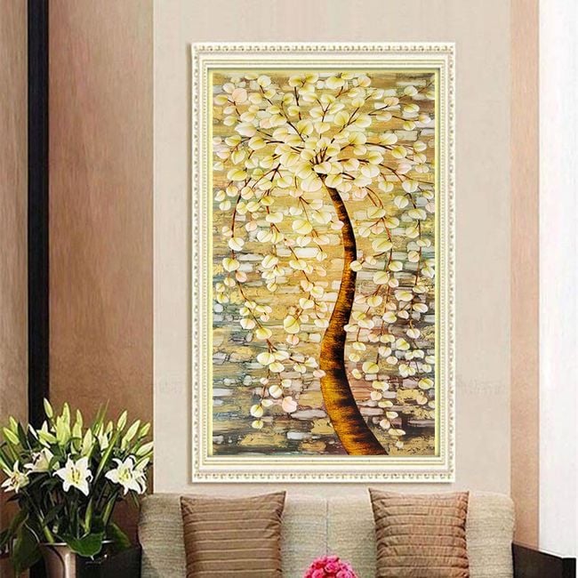 You will create this picture yourself using variously coloured stones that you will stick onto the canvas. The numbers will guide you. The picture depicts a tree.