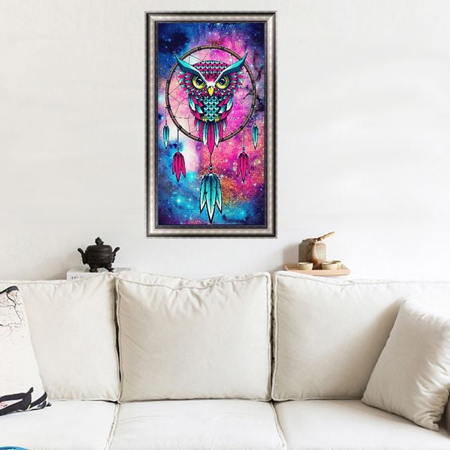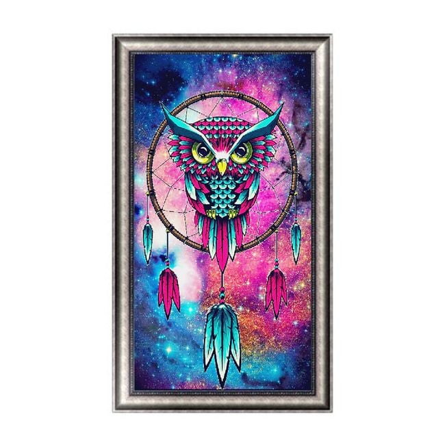 Using small coloured stones, you will create a picture featuring a dreamcatcher with an owl.