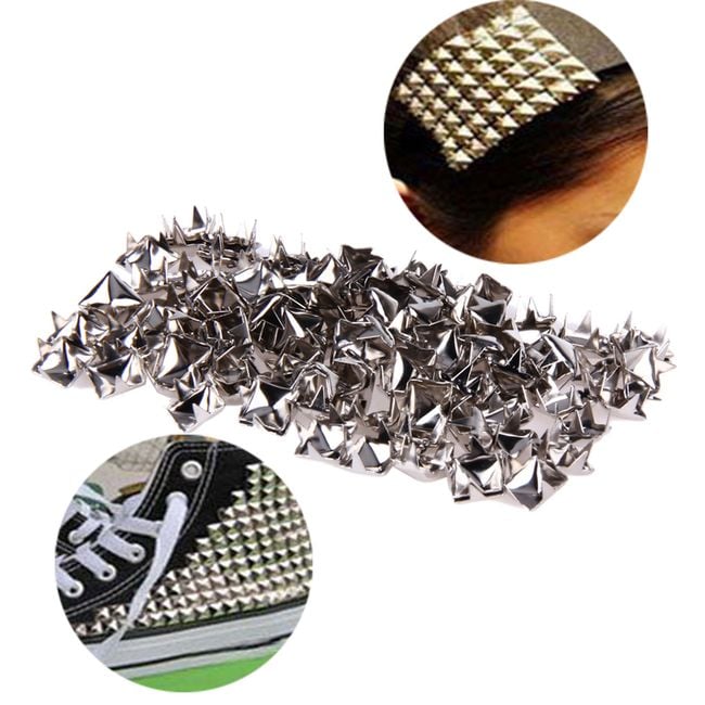 The spikes are pyramid-shaped and can be used to decorate clothing, for example.