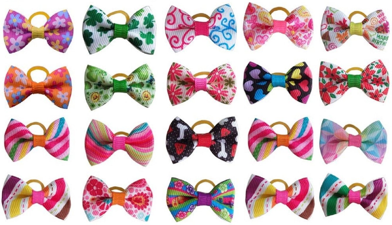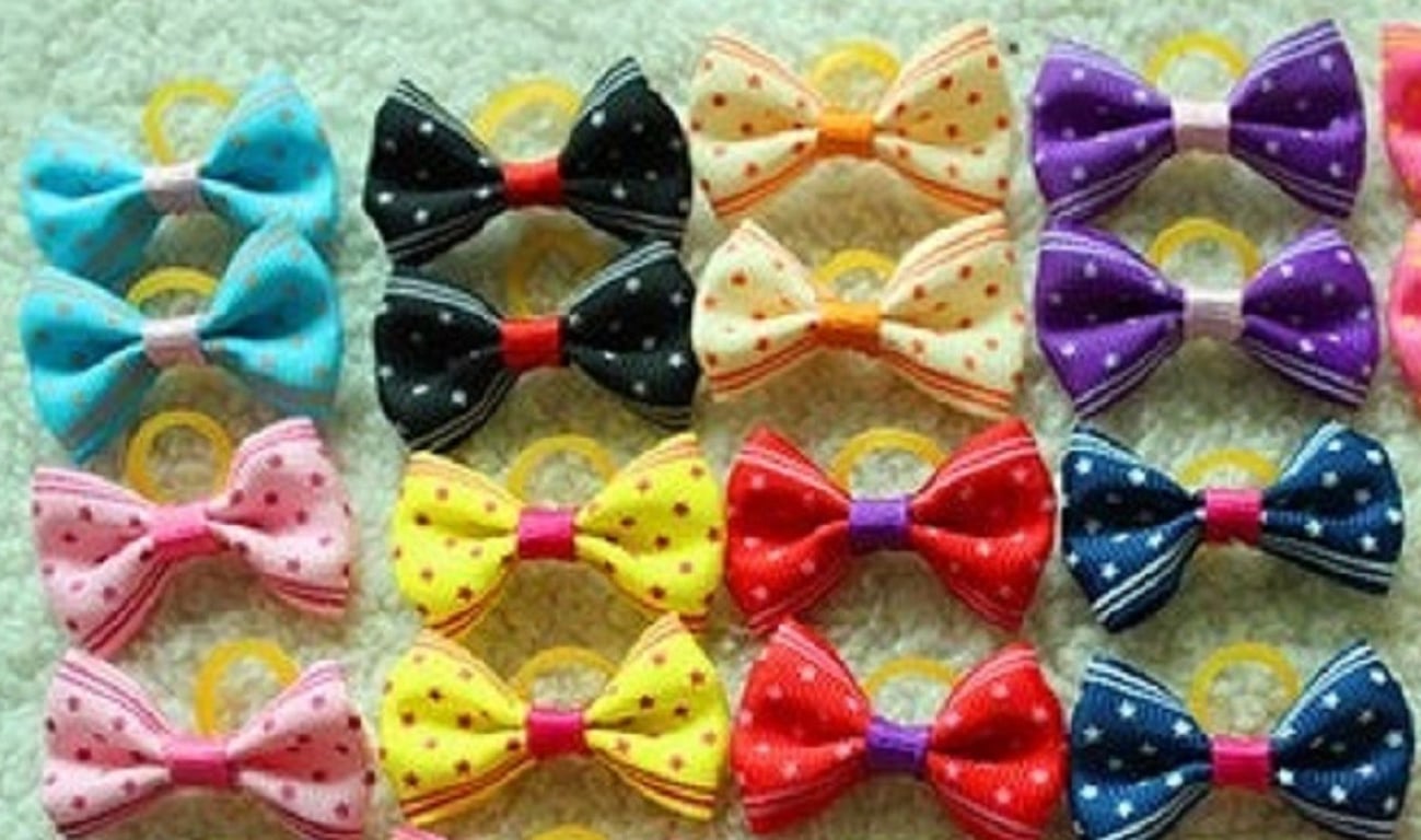 Dog Hair Ties with Butterfly 20 pcs