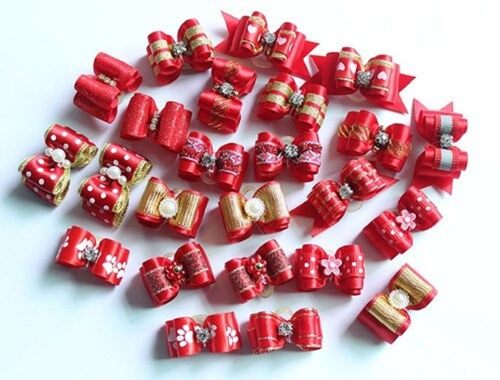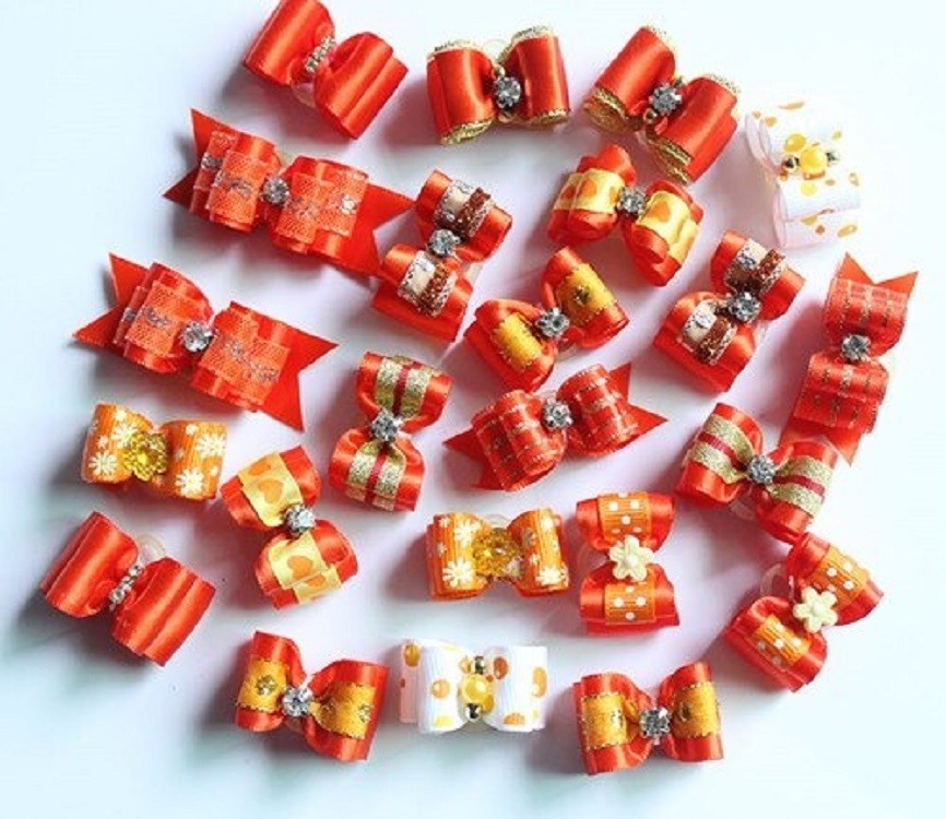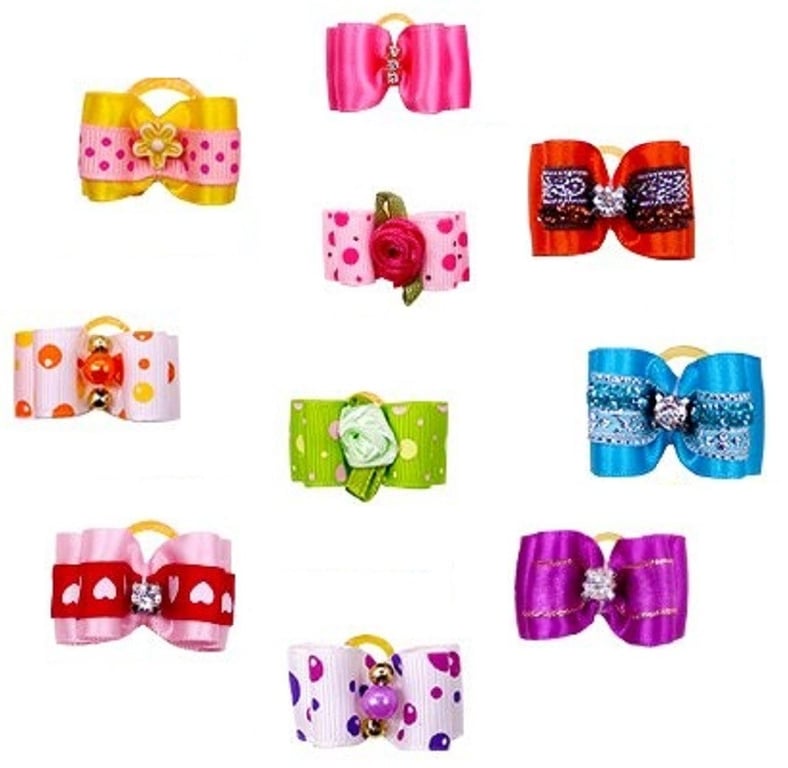 Dog Hair Ties with Bow 10 pcs