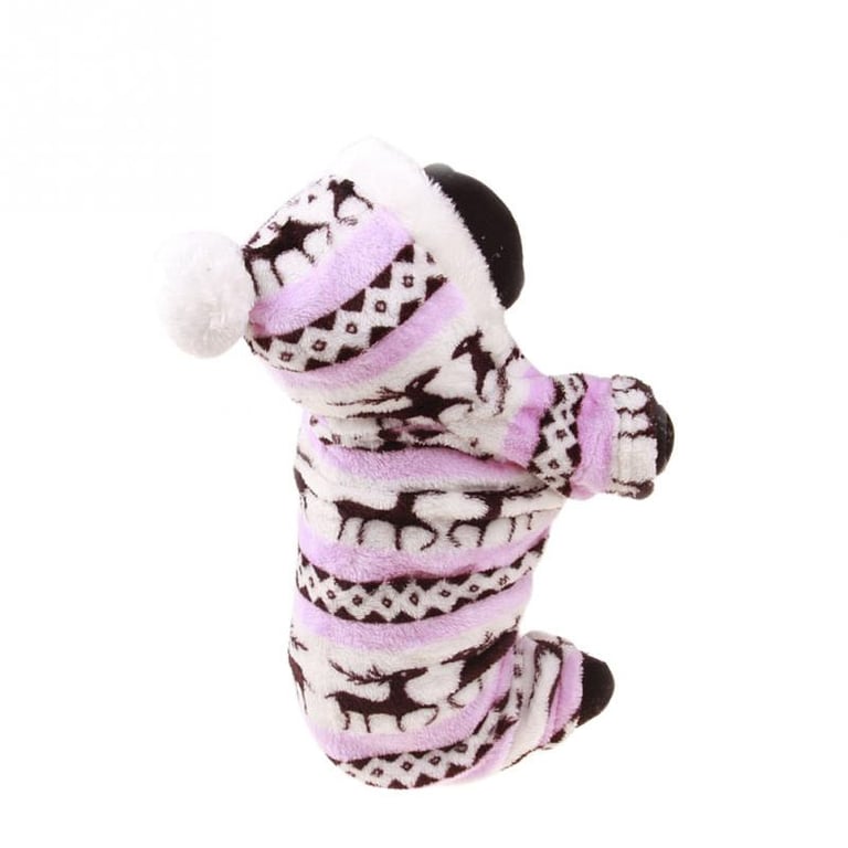 Pet outfit with a hood, featuring a large fluffy pom-pom and fur. Warm, cosy material. Nordic pattern. Available in two colour options.