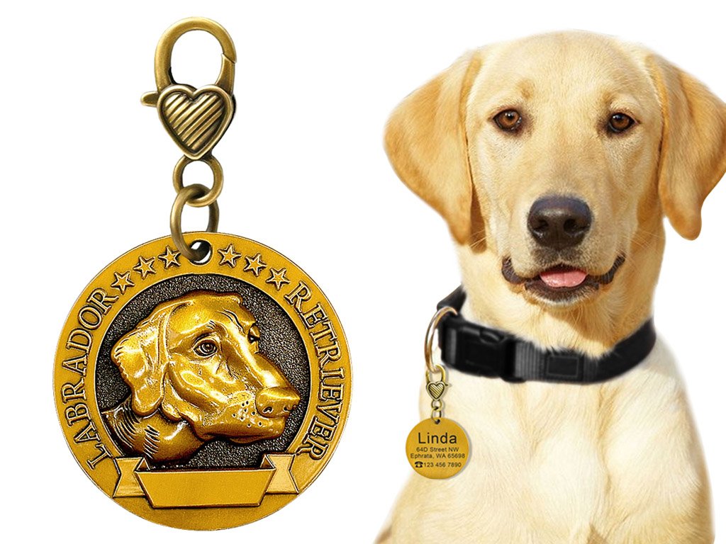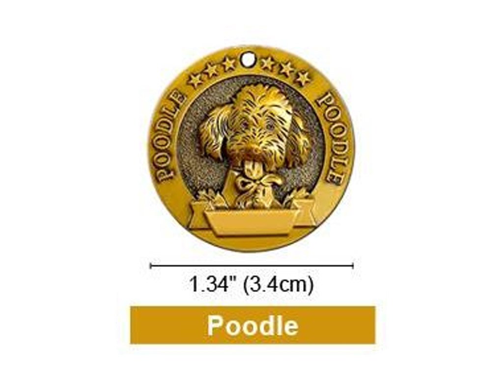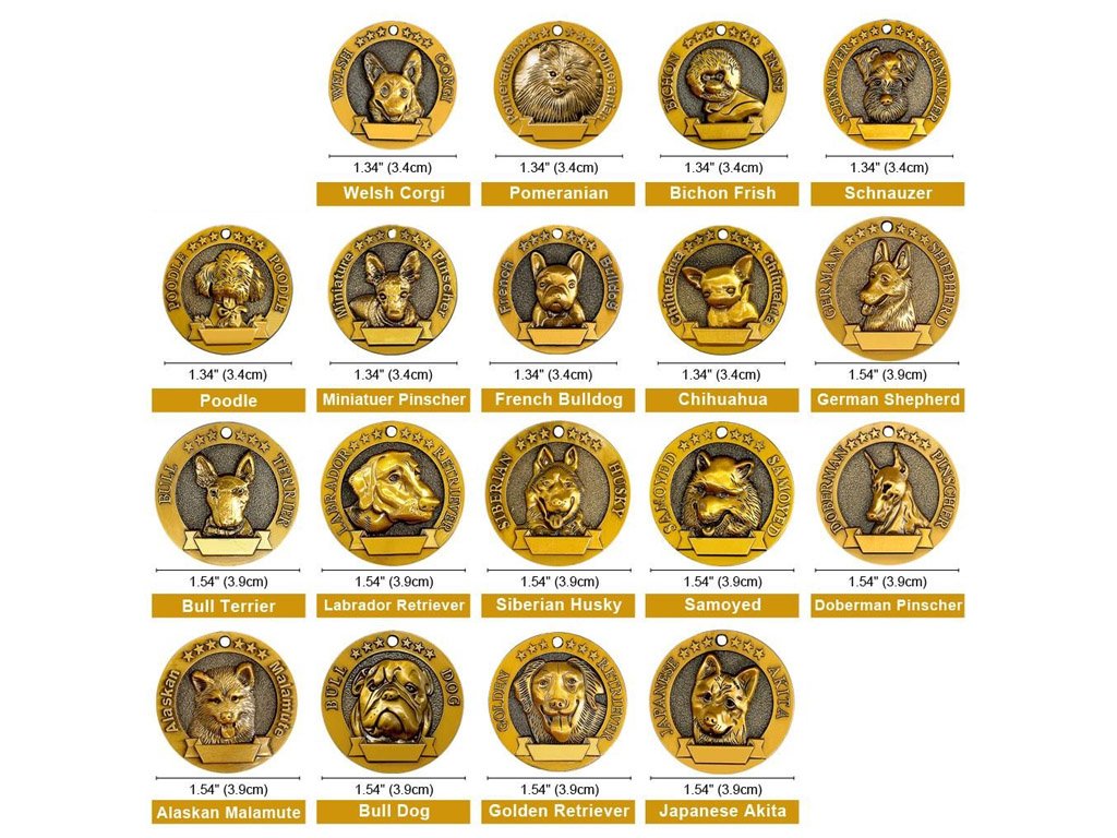 Enhance your dog's style with a stylish collar charm featuring a dog's face. Choose a charm from various breeds and add your contact details on the smooth side, in case they wander off.