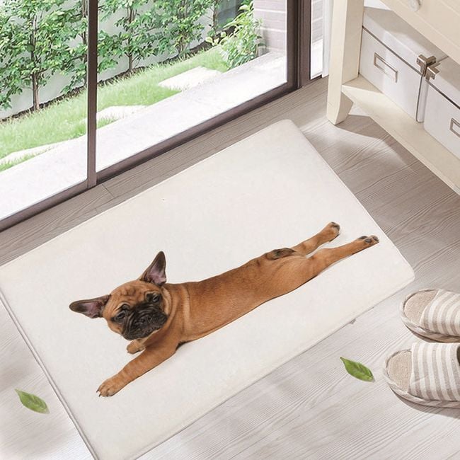 The doormat has a non-slip surface and features a design of a dog or cat. Choose from 5 variants.