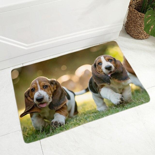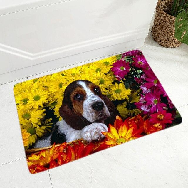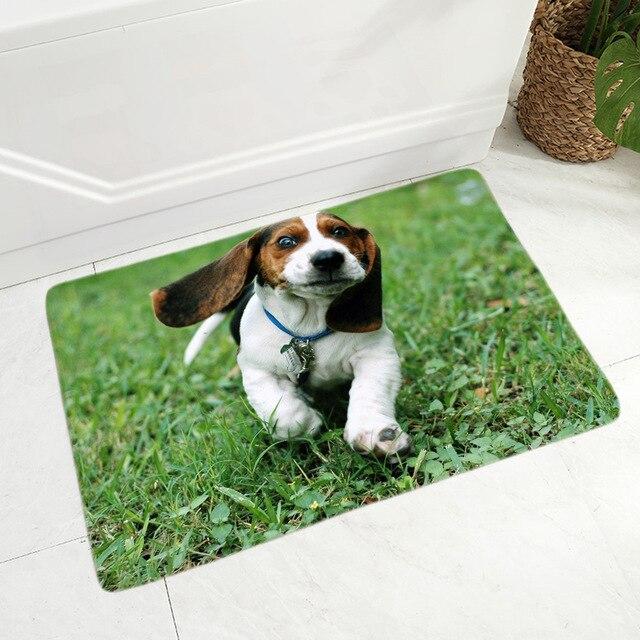 Doormat with a dog print in various styles.