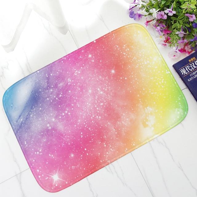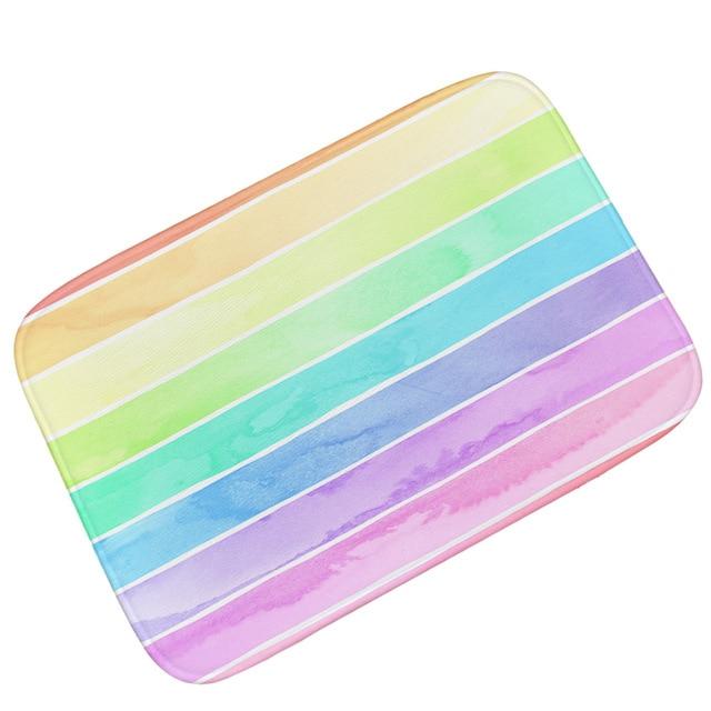 Doormat with a multi-coloured pattern.