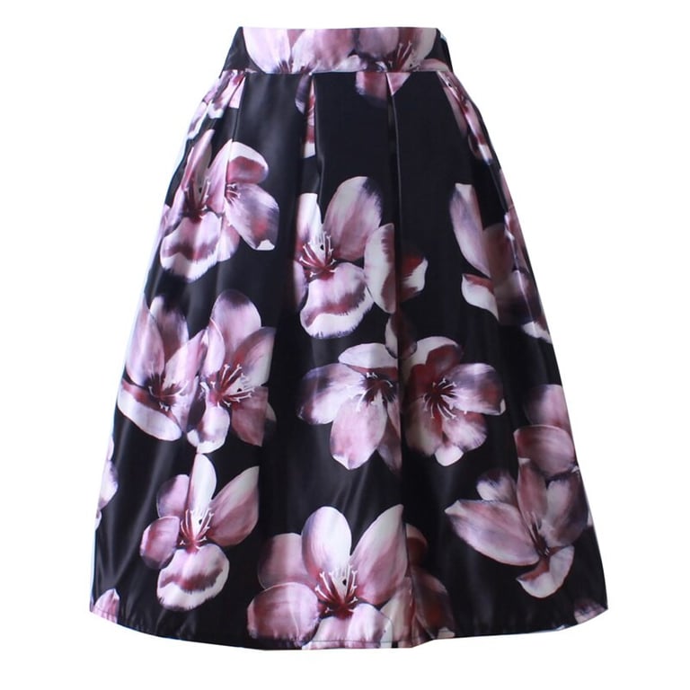Women's retro style skirt with an elastic waistband and wide balloon cut. One size fits all. Colourful floral print. Available in multiple variants.