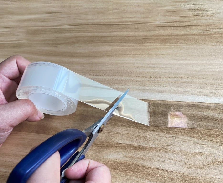 Double-sided transparent adhesive tape. Applicable on any surface - wall, glass, wood, etc. An ideal helper if you want to attach something easily and quickly without drilling. The adhesive tape is also waterproof and can be reused. The tape is 20 mm wide.
