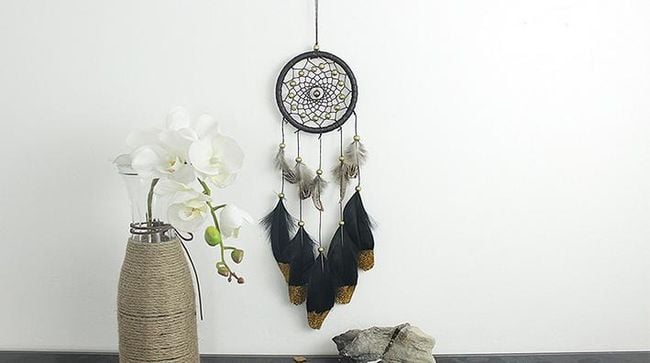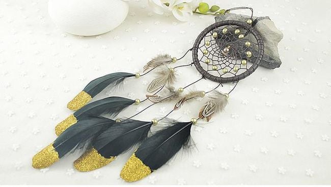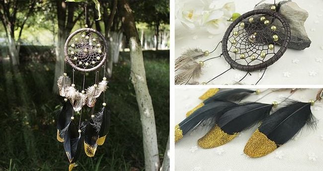 Dreamcatcher with black and gold feathers