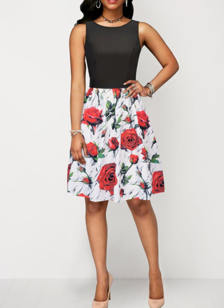 Dress with a floral skirt