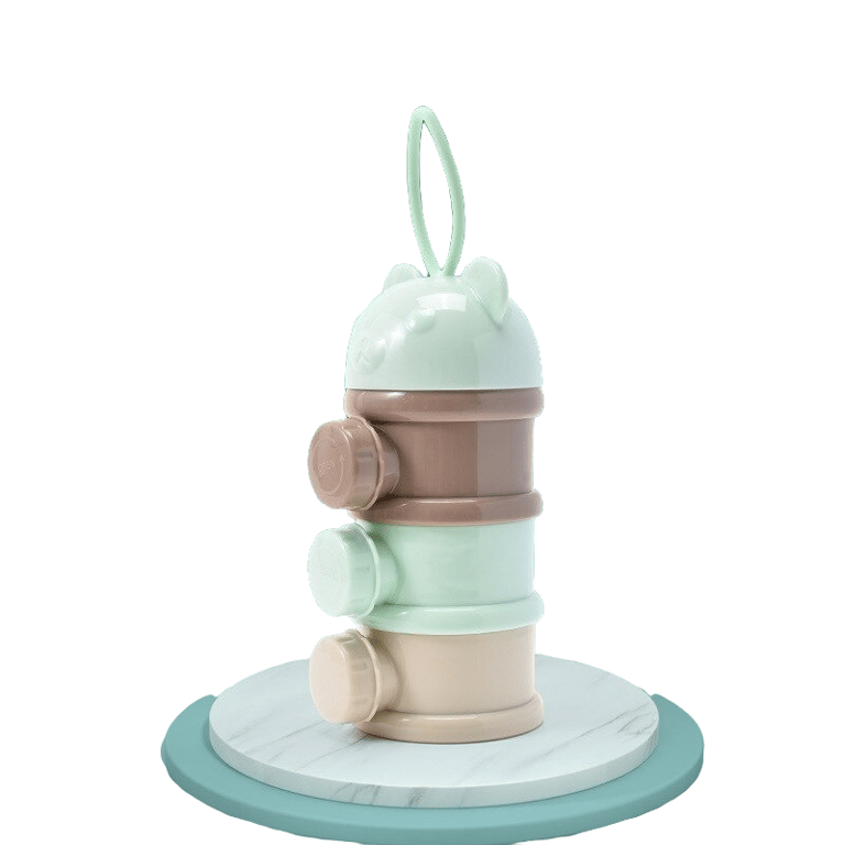 With this dispenser, you can easily transport dry milk or other foods. It consists of three parts that can be individually sealed. They can also be easily stacked on top of each other. Each part can comfortably hold 60 g of dry milk.