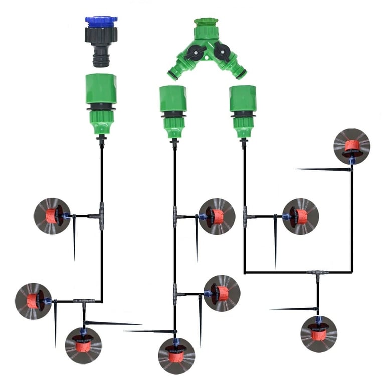 • length 10 m: 1x hose, 12x end dripper, 12x connector, 12x hose holder, 1x 1/2" connector, 1x connector