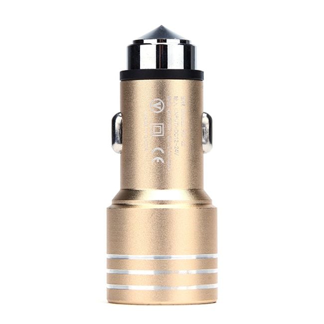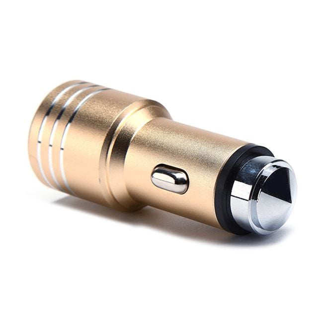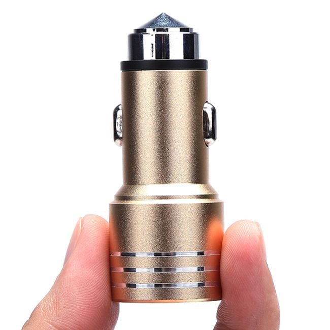 The very pleasant design will charm the interior of any car. The charger connects to the car's cigarette lighter and can charge up to two devices simultaneously. It includes a safety fuse against overheating and overcurrent. The bottom part of the adapter is equipped with a special shape, allowing you to use the adapter as a hammer to break glass, enabling a quick exit from the vehicle in case of imminent danger.