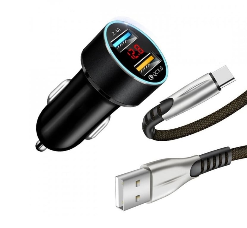 Dual USB Car Charger with Cable