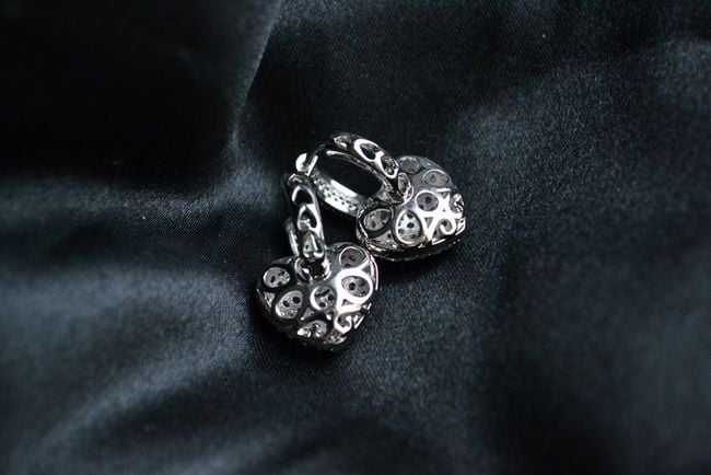 An imaginative piece of jewellery will delight any woman! These earrings in the shape of a convex heart adorned with sparkling stones beautifully enhance your femininity. Additionally, the earrings can be worn in two ways: either with the dazzling side or the more understated perforated side. There are two colour options available.