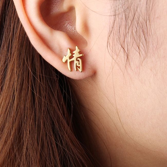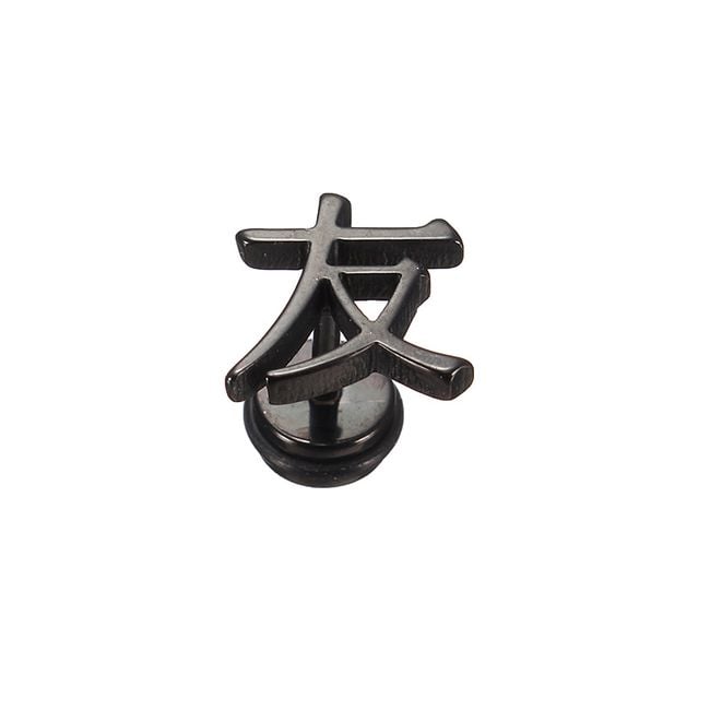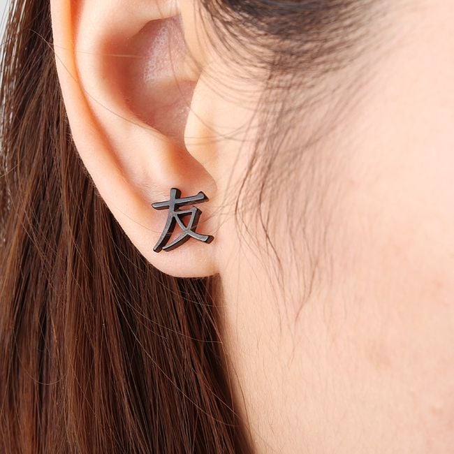 The earring features a Chinese character and is suitable for both women and men. It fastens with a stopper included in the packaging. You can choose from two colours and variants. The package contains only one earring.