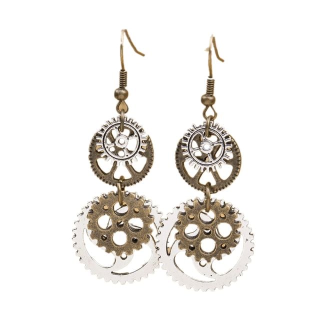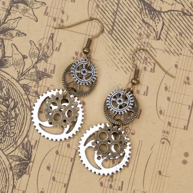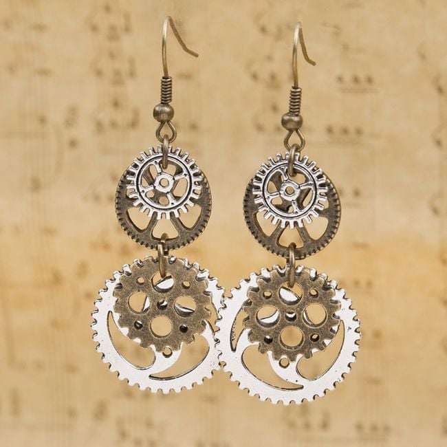 Earrings don't have to be just in classic shapes and designs – get yourself some more original ones. For example, these dangling earrings made of cogwheels.