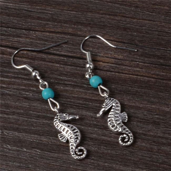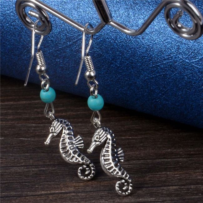 The drop earrings are made of cute seahorses.