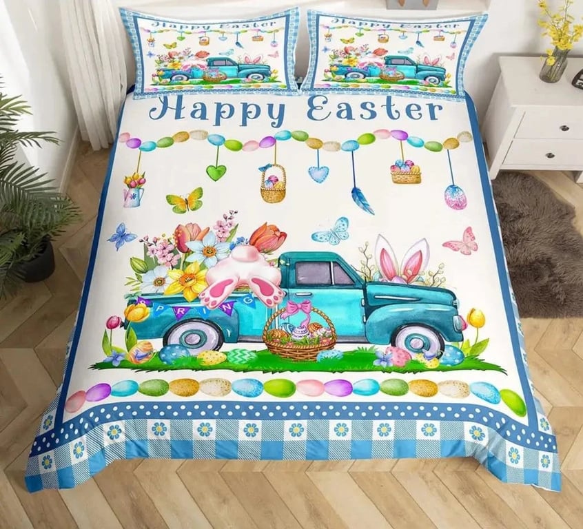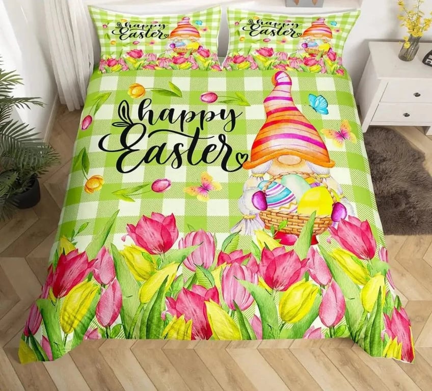 Cheerful Easter bedding.