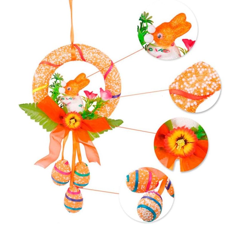 This beautiful wreath with bunnies and eggs will create a wonderful Easter atmosphere in your home. You can choose from 3 colours. Material: foam Dimensions: 30 x 15 cm