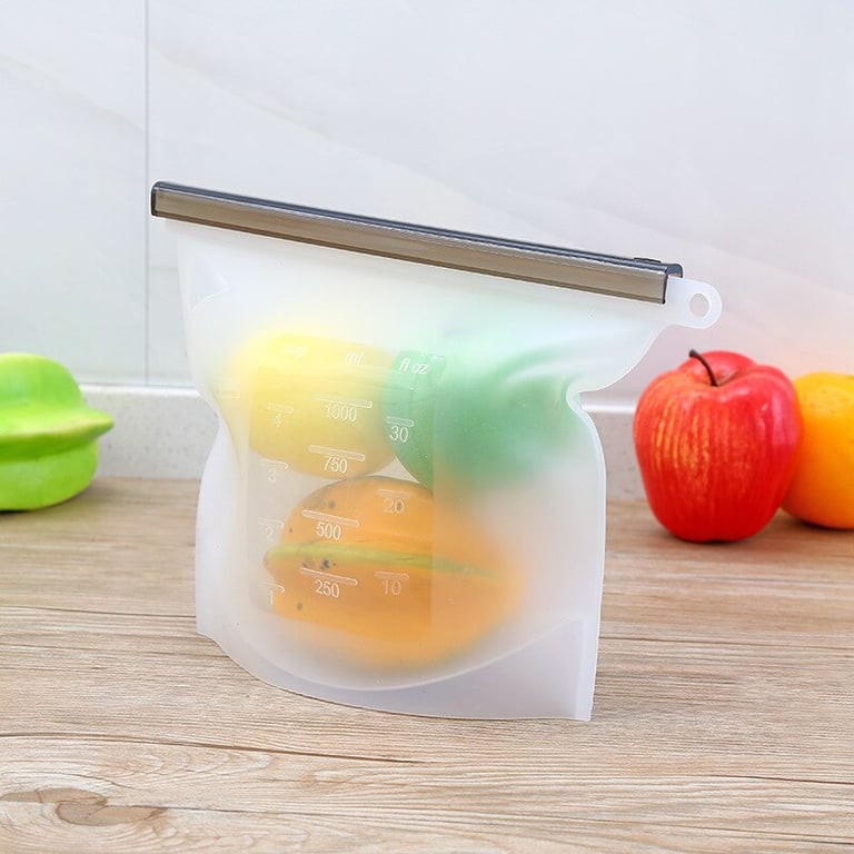 • Practical eco-friendly reusable bags that keep your food well stored, easily fit in the fridge, and can also hold liquids.