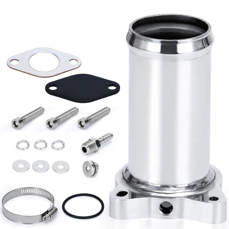 EGR valve blanking kit - EGR for VAG 1.2 / 1.4 / 1.9 TDi 90–115 PS - Improves torque delivery and performance at low and mid-range revs - Prevents fouling of the intake system = gradual loss of power - The pipe includes an adapter for connecting a boost gauge - Improves the appearance of the engine bay Product features: - Material: aluminium - Contents: 1 set - Colour: see picture - Size: - Overall length: 103 mm - Hose outlet length: 90 mm - Hose diameter: 51 mm - Inner flange diameter: 47 mm - Warranty: 2 years Note: intended for vehicles with a vacuum-controlled throttle valve. Not for electronically controlled valves. - This pipe eliminates exhaust gas recirculation, i.e. the EGR valve. - When EGR is used, exhaust gases are redirected back into the intake system, which reduces NOx production but also has drawbacks. - Diesel combustion produces oily soot that enters the intake. - These deposits build up and gradually clog the intake, resulting in reduced power and increased smoke emissions (harmful pollutants). Suitable for the following car models: - VW Golf Mk4 – ASZ 130, ARL 150 - VW Golf Mk5 – BXF 90, BKC / BXE 105 - VW Golf Mk5 Plus – BXF 90, BKC / BXE 105 - VW Bora – ASZ 130, ARL 150 - VW Caddy – BJB 105 - VW Polo – ASZ / BLT 130 - VW Sharan – ASZ 130 - VW Jetta – BKC / BXE 105 - VW Passat – BKC / BXE 105 - VW Passat B5 / B5.5 – AVF / AWX 130 - VW Transporter T5 – AXC 85 & AXB 105 - VW Sharan – AUY / BVK 115, ASZ 130 & BTB 150 - Seat Leon – BXF 90, BKC / BXE 105, ASZ 130, ARL 150 - Seat Toledo – BKC / BJB / BXE 105, ASZ 130, ARL 150 - Seat Ibiza – ASZ / BLT 130, BUK / BPX 160 (Cupra) - Seat Altea – BKC / BXE / BJB 105 - Seat Alhambra – AUY / BVK 115, ASZ 130 & BTB 150 - Audi A3 8L – ASZ 130 - Audi A3 8P – BKC / BXE 105 - Audi A4 – AVF / AWX 130 - Audi A6 – AVF / AWX 130 - Skoda Fabia – BSW 105, ASZ / BLT 130 - Skoda Octavia – BKC / BXE / BJB 105, ASZ 130 - Skoda Roomster – BSW 105 - Skoda Superb – AVF / AWX 130