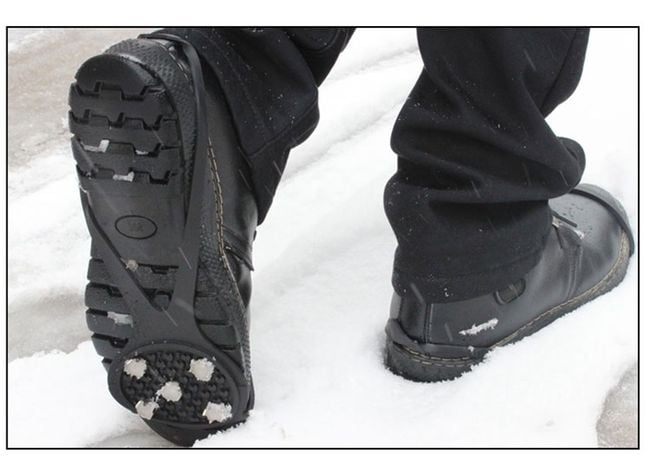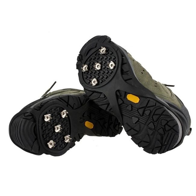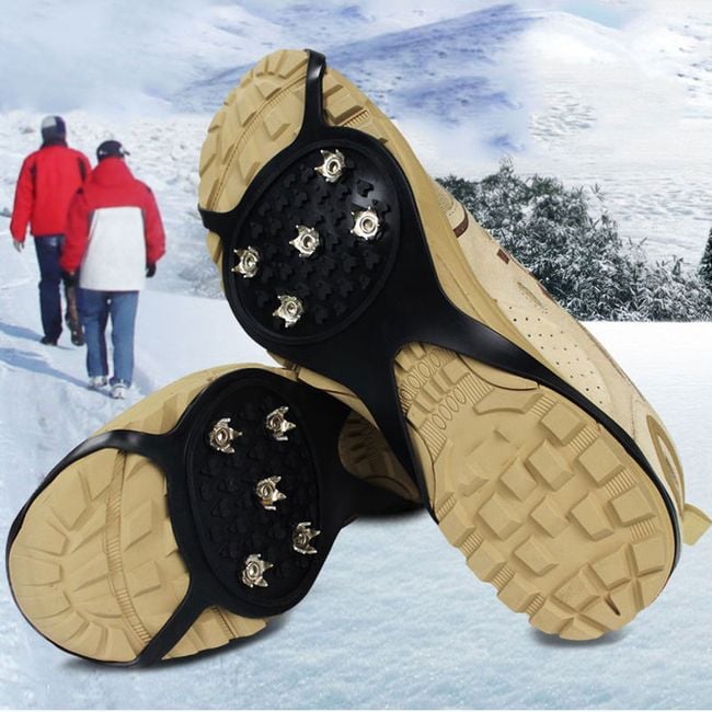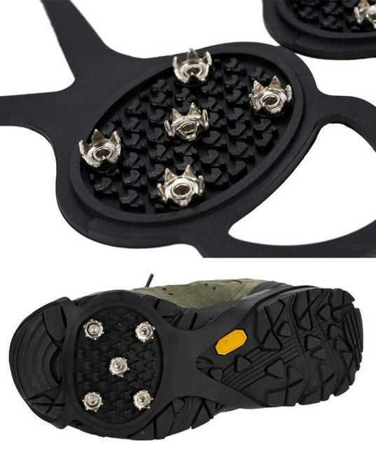 This accessory can be easily installed on almost any footwear. The metal spikes on the underside can prevent nasty falls on snow or ice.
