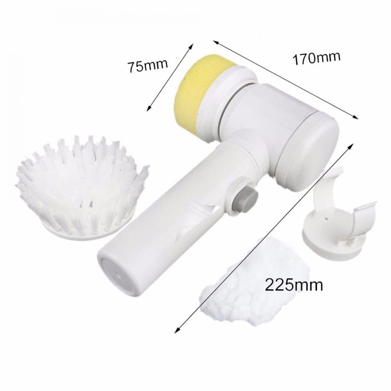 Electric brush for cleaning kitchen or bathroom surfaces. 3 attachments for different modes. The soft head with a sponge is suitable for gentle cleaning of delicate surfaces. The hard nylon brush is ideal for cleaning tiles, bathtubs, and other bathroom or kitchen surfaces. The polyester brush is suitable for cleaning sofas or carpets. Powered by batteries.