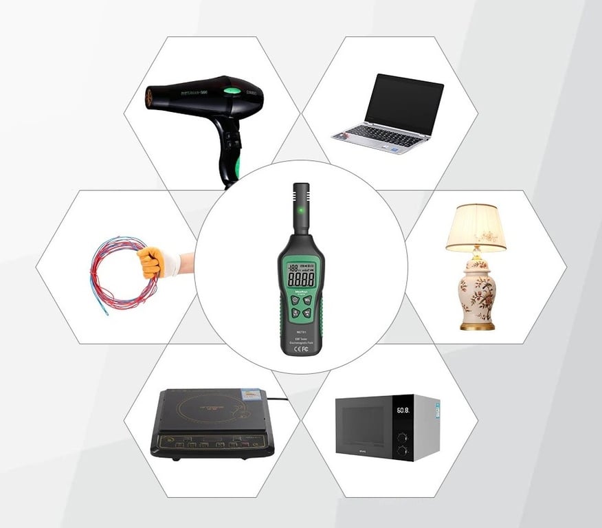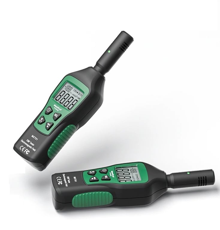An electromagnetic field tester with a built-in sensor. It measures and displays the value of magnetic field radiation (mG/µT) and electric field (V/m) with high accuracy. The values are shown on a readable display. Equipped with an alarm and indicator. The electromagnetic field tester is particularly suitable for testing TVs, computers, printers, refrigerators, microwave ovens, hair dryers, etc.