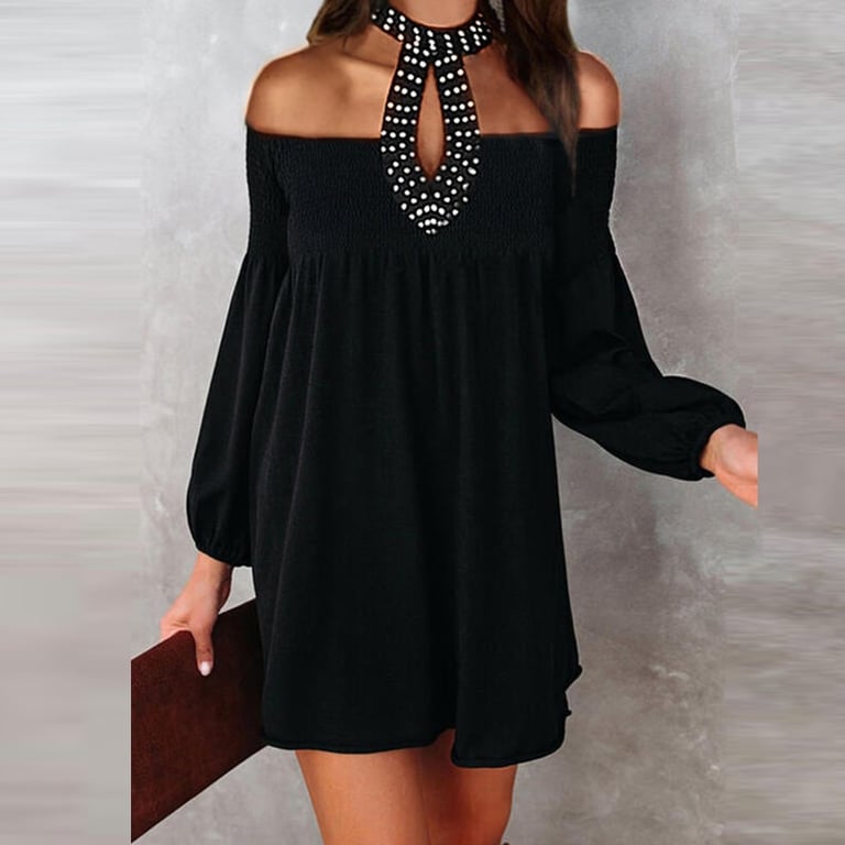 Elegant black mini dress for women