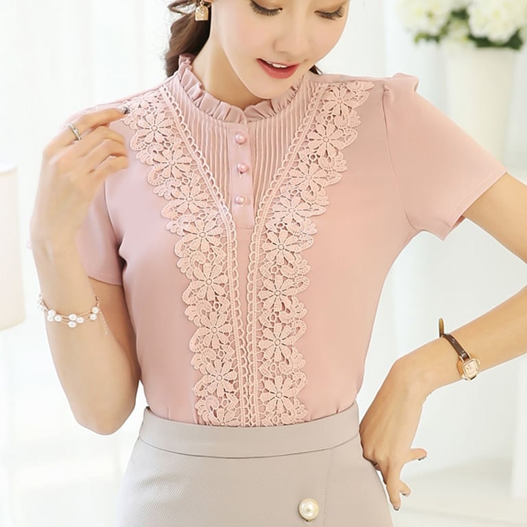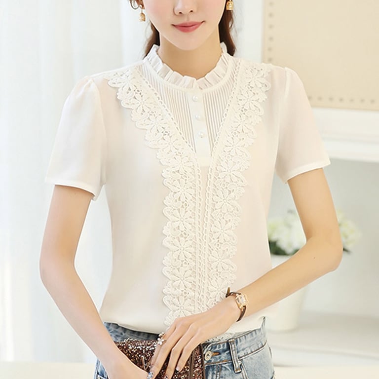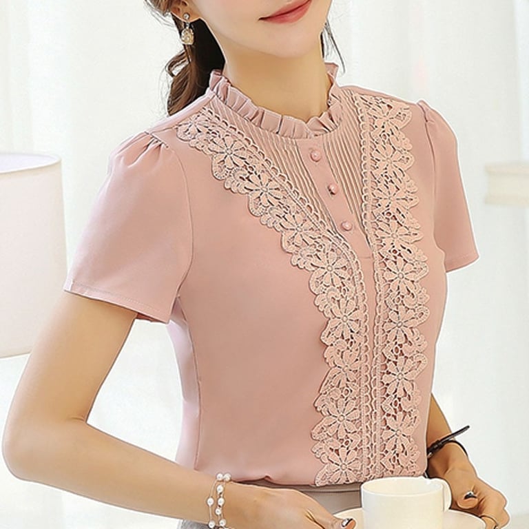 Very elegant blouse. It has short sleeves and flowers sewn from the shoulders to the waist.