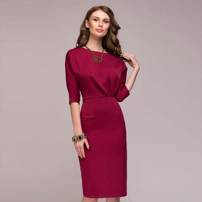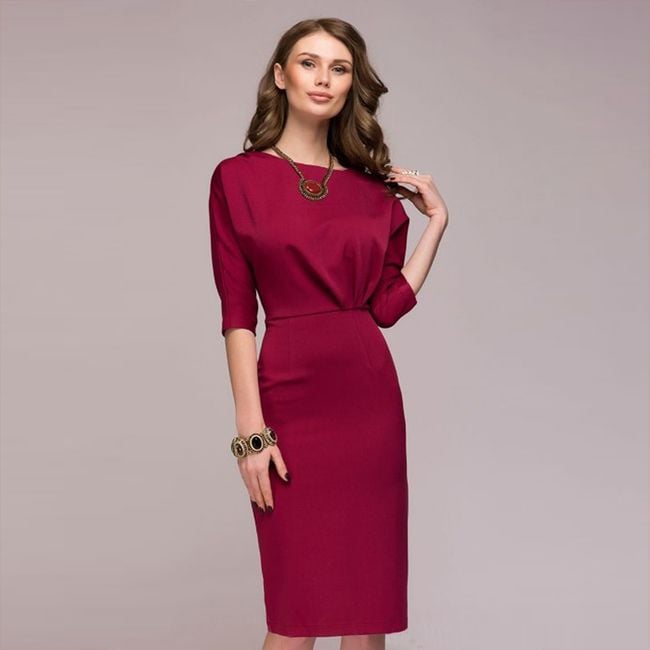 Long dress with three-quarter sleeves beautifully accentuates your curves and will undoubtedly make you the queen of the evening.