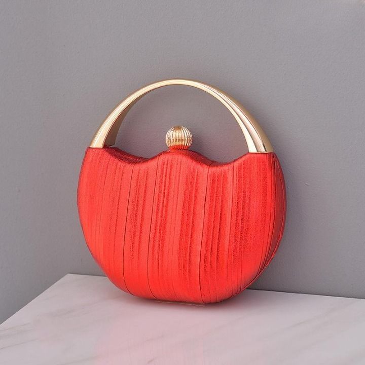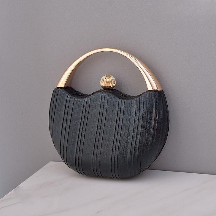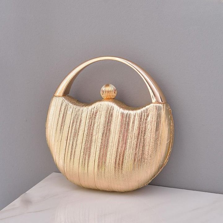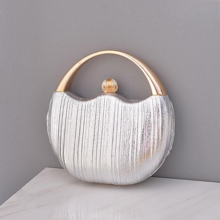 Luxurious round sparkling clutch with a handle and embellishment.