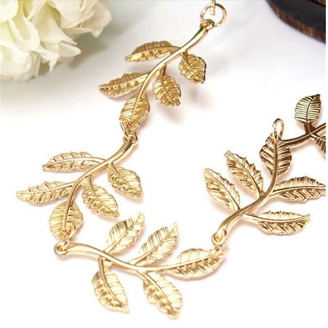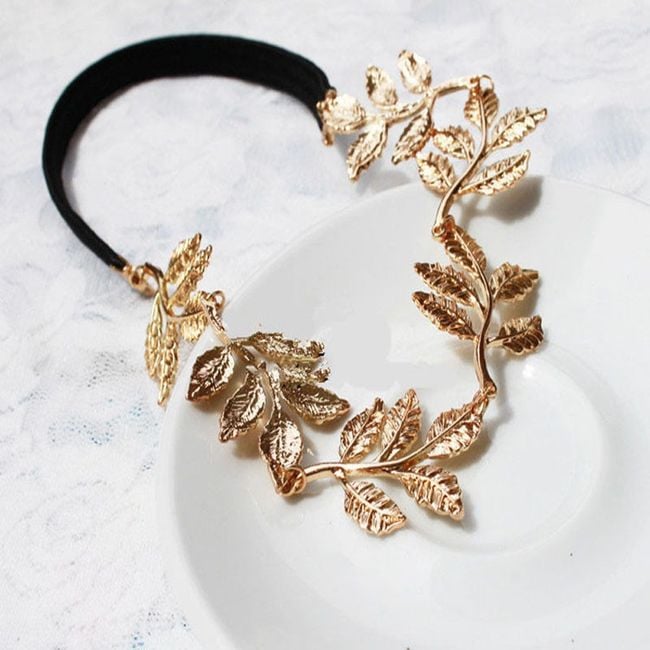 A hairband that will look lovely with both everyday hairstyles and formal ones! It is adorned with leaves in a golden colour.