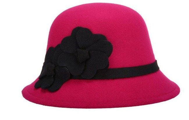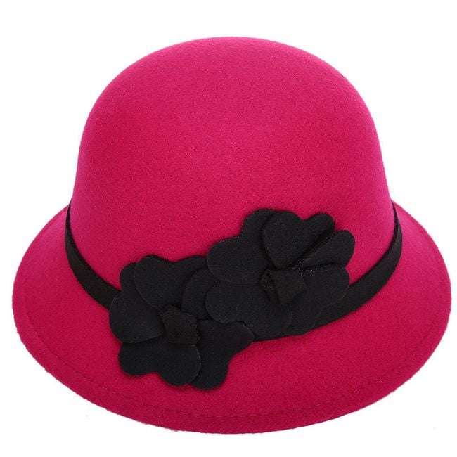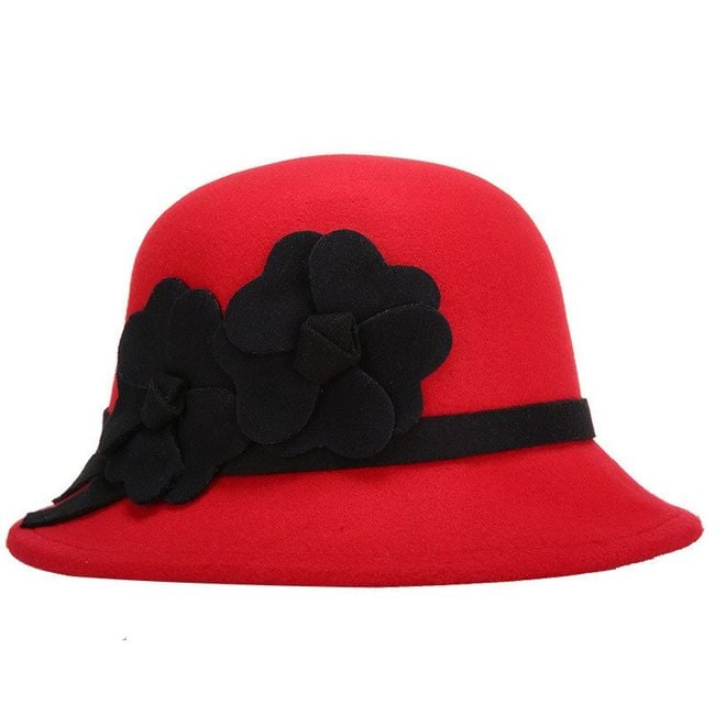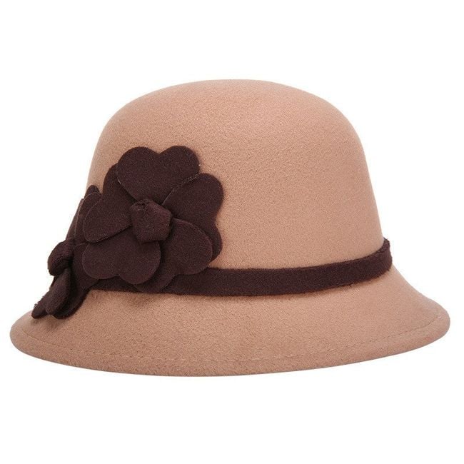 Women's elegant round hat, adorned with fabric flowers.