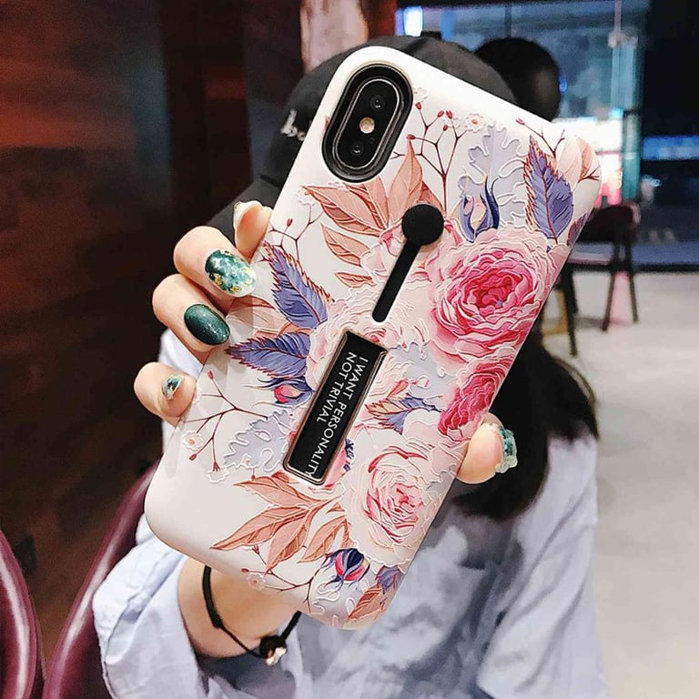 Original case with floral designs for selected iPhone models. The case features a finger grip and a practical stand.