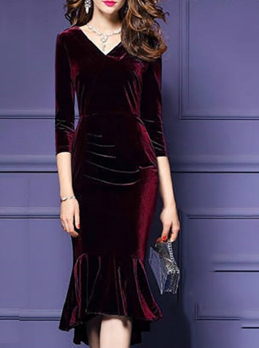 Women's dress in an elegant style. V-neck and three-quarter sleeves.