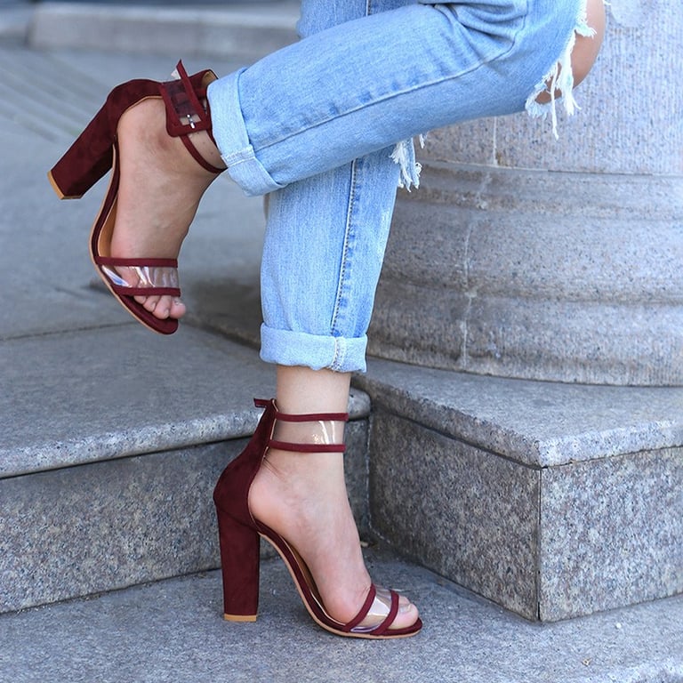 You will fall in love with these elegant open-toe high-heeled shoes.