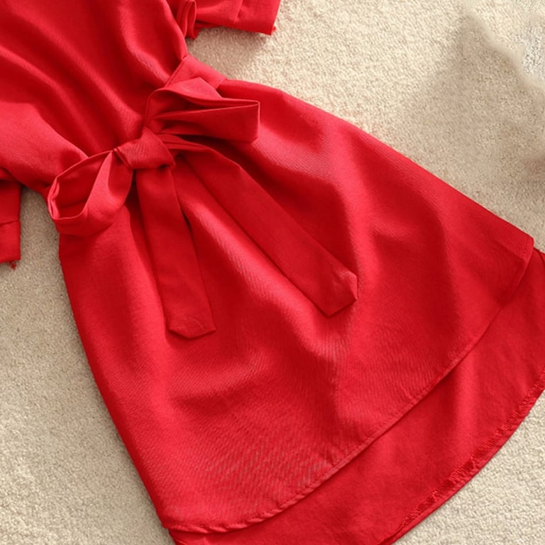 It has a tie around the waist and three-quarter sleeves.