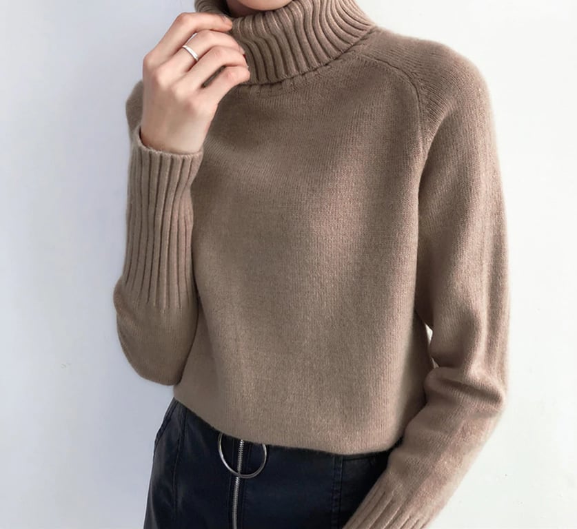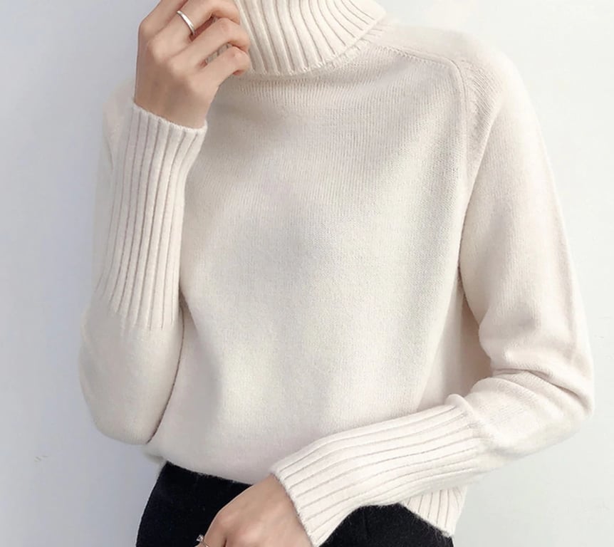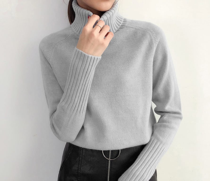 Women's elegant roll neck that is easy to combine. It features a subtle striped pattern. Suitable for cooler days.