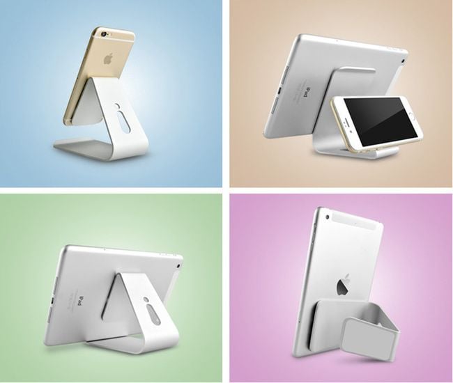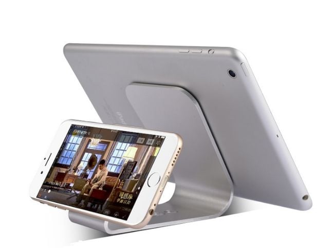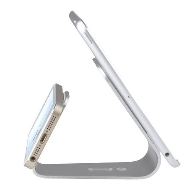 This elegant stand is designed for iPhone and iPad. There are multiple ways to secure your iPhone with this stand. All options are displayed in the images. You can either simply lean your devices against it or secure them in a special place where they will stay in place without leaning.
