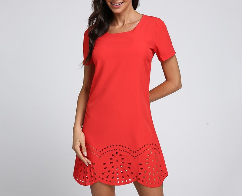 Summer women's mini dress with interesting cut-outs on the skirt.