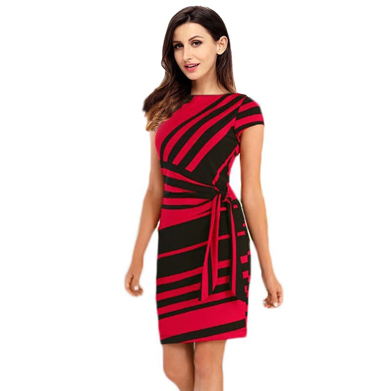 Elegant women's dress Nola with striped pattern – red